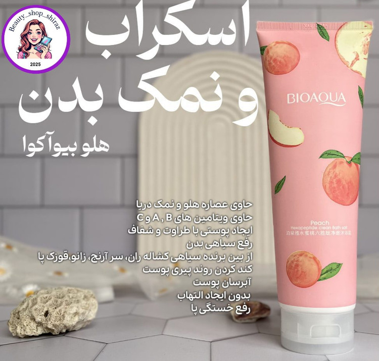 🍑حاوی عصاره هلو و نمک دریا وشامپو بدن