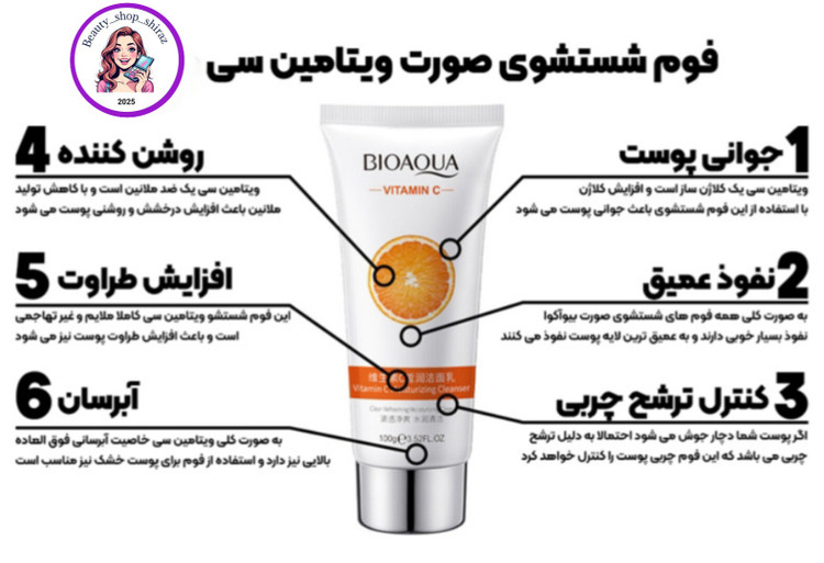 فوم شستشوی صورت ویتامین سی بیوآکوا یک محصول مراقبت از پوست است که به طور عمده برای پاکسازی و روشن کردن پوست استفاده میشود. این فوم حاوی ویتامین C است که یک آنتیاکسیدان قوی است و به محافظت از پوست در برابر آسیبهای ناشی از رادیکالهای آزاد کمک میکند. همچنین، این فوم میتواند به روشن شدن لکهای پوستی، کاهش التهابات و بهبود سطح پوست کمک کند.